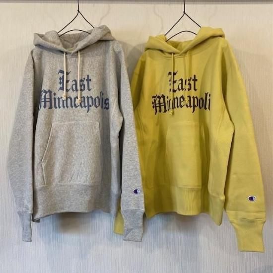 Champion "REVERSE WEAVE フードスウェット"(プリント)